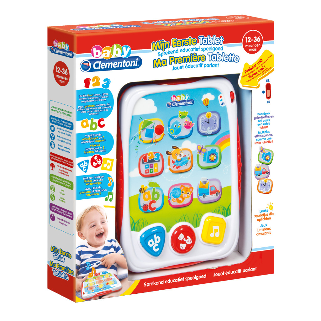 • De elektronische pratende tablet van Clementoni zit boordevol liedjes, rijmpjes en leuke geluids- en lichteffecten